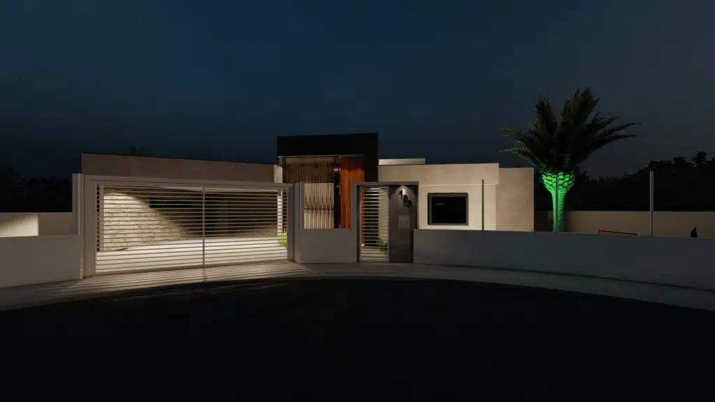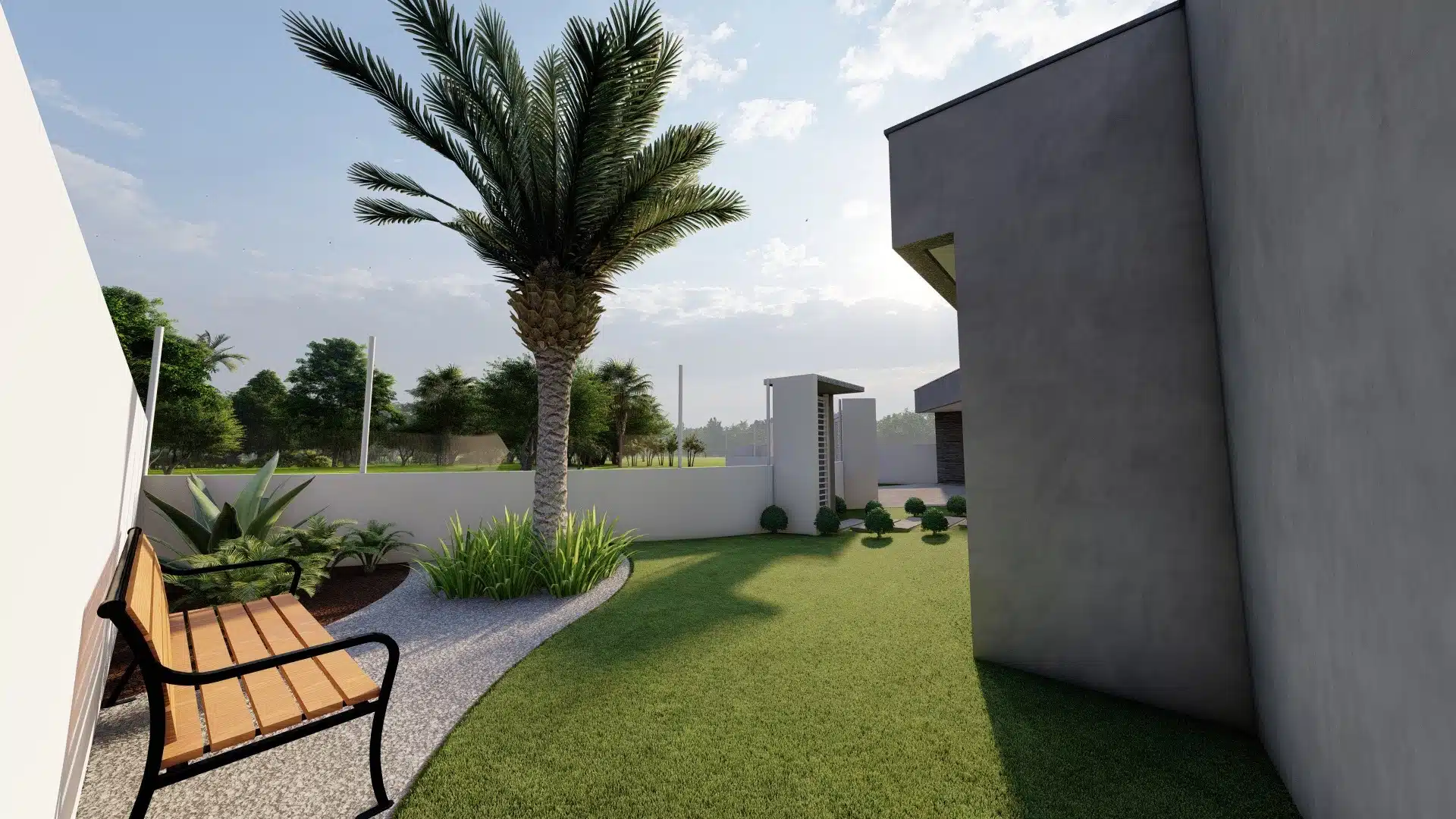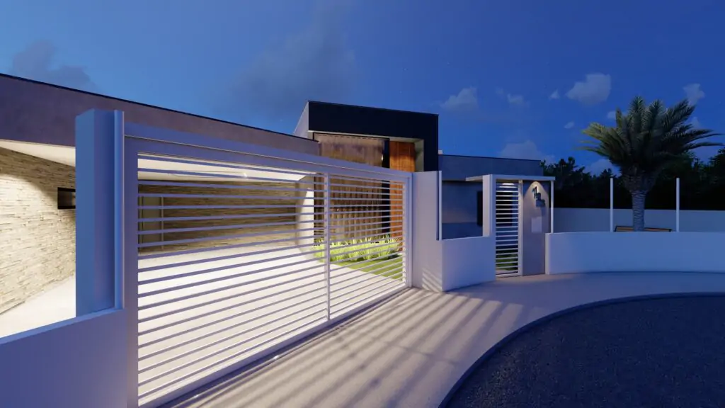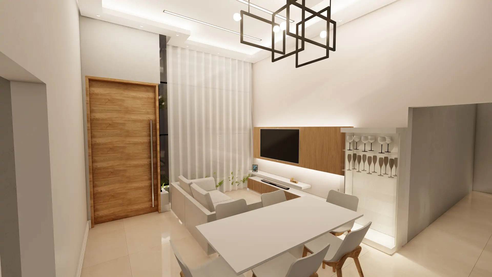 Projeto único com um detalhe desafiador para a execução quando mencionamos a garagem que não é apenas um ambiente da residência, mas sim um importante detalhe arquitetônico na fachada. Contando com mais de vinte metros em sua dimensão frontal de terreno o projeto foi pensado não carregar de muitas informações a fachada e seguir um norte sem curvas, limpo e moderno.
